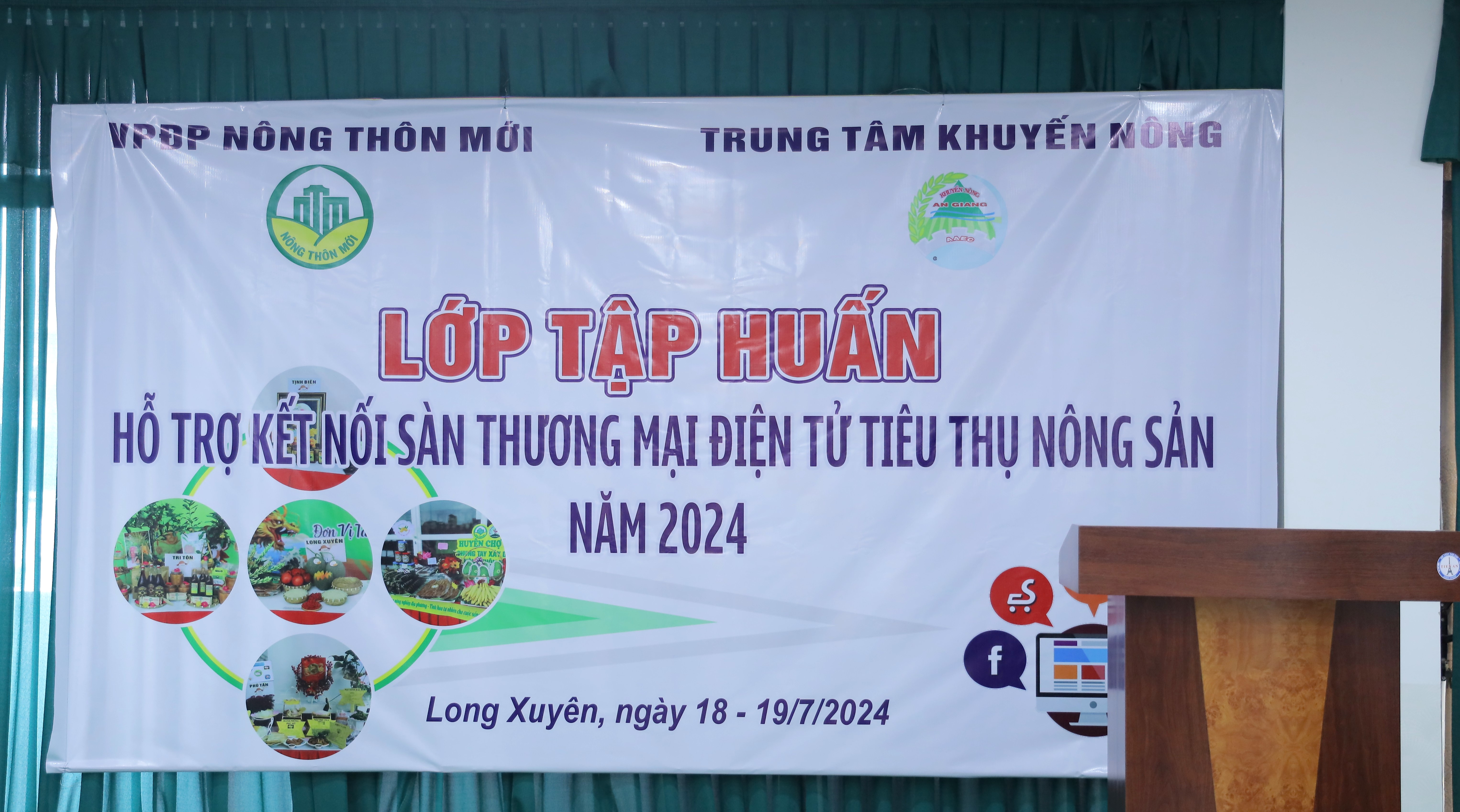 Ngày 18 và 19/07/2024, Trung tâm Tin học Trường Đại học An Giang tham gia tập huấn cho nông dân, hợp tác xã, tổ hợp tác và các chủ thể OCOP “Kết nối sàn thương mại điện tử tiêu thụ nông sản năm 2024” do Trung tâm Khuyến nông An Giang tổ chức.