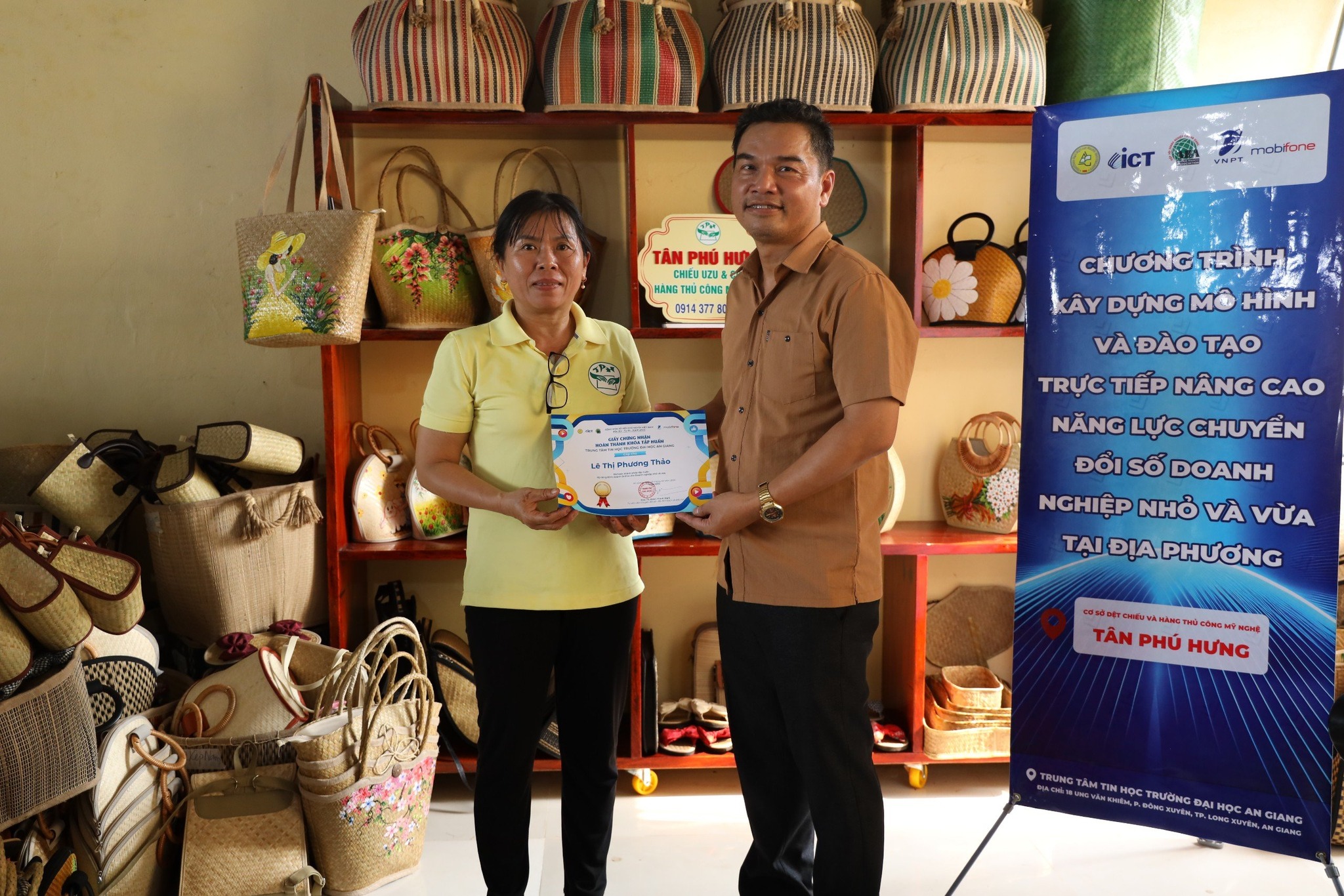 Ngày 09/03/2024, Trung tâm Tin học Trường Đại học An Giang tổ chức chương trình Xây dựng mô hình và nâng cao năng lực chuyển đổi số doanh nghiệp nhỏ và vừa tại Cơ sở dệt chiếu và hàng thủ công mỹ nghệ Tân Phú Hưng huyện An Phú, tỉnh An Giang. Lớp tập huấn nằm trong khuôn khổ đề tài cấp tỉnh "Nghiên cứu Giải pháp Chuyển đổi số cho các doanh nghiệp nhỏ và vừa trên địa bàn tỉnh An Giang", do Trường Đại học An Giang chủ trì và PGS.TS Đoàn Thanh Nghị làm chủ nhiệm đề tài.