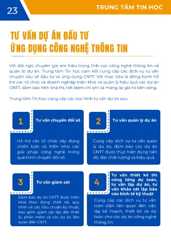 quản trị dự án. Trung tâm Tin học cam kết cung cấp các dịch vụ tư vấn